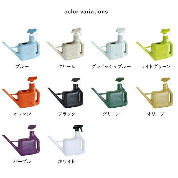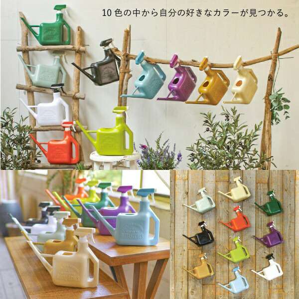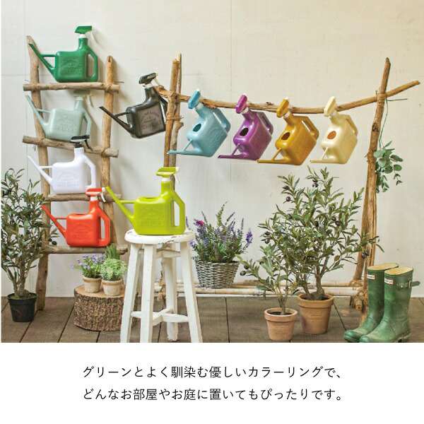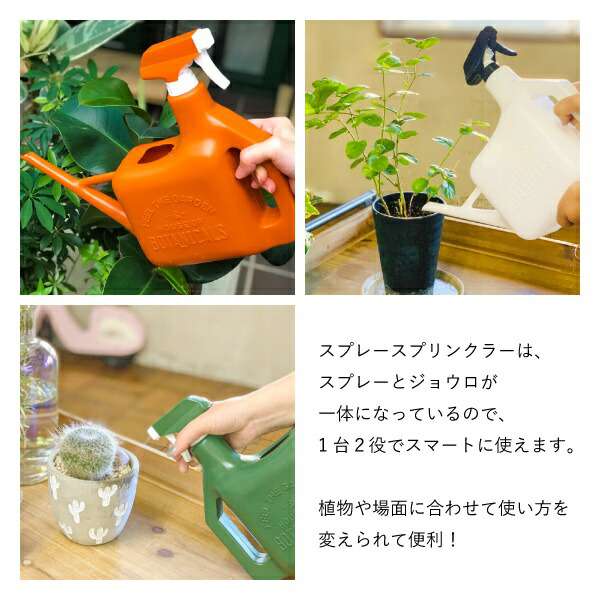 円ロングセラーのスプレースプリンクラーは、スプレーとジョウロが一体になっているので1台2役でスマートに使えます。グリーンとよく馴染む優しいカラーリングで、どんなお部屋やお庭でもぴったりです。大人ガーデンにも合うカラー、スタイリッシュでシンプルなロゴは長く愛用できそう。