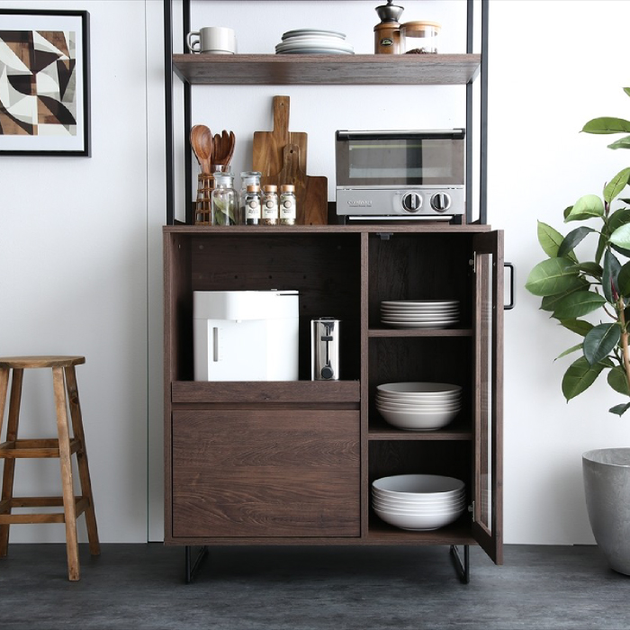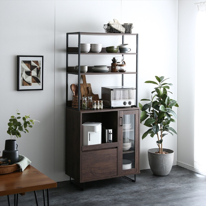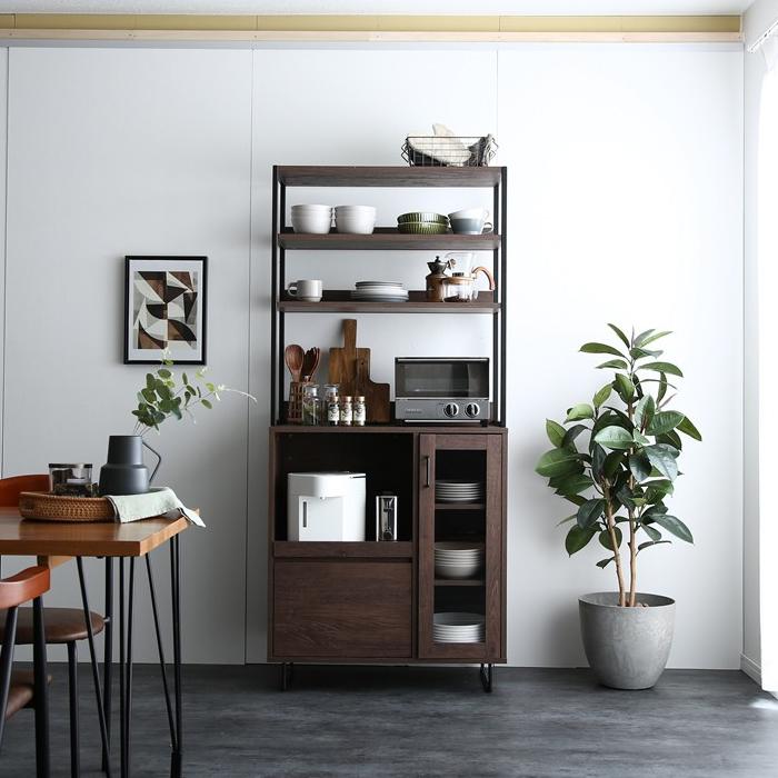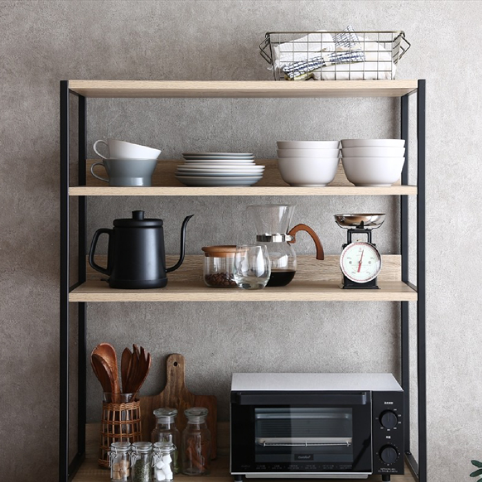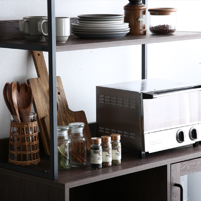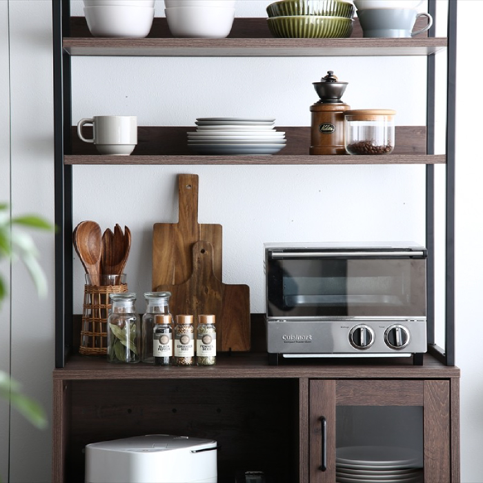 オープン収納で、おしゃれな食器やキッチン家電を1つのインテリアとして加えていただけます。 食器や家電の他に、調味料やお気に入りの調理器具などを置くのもおすすめ!