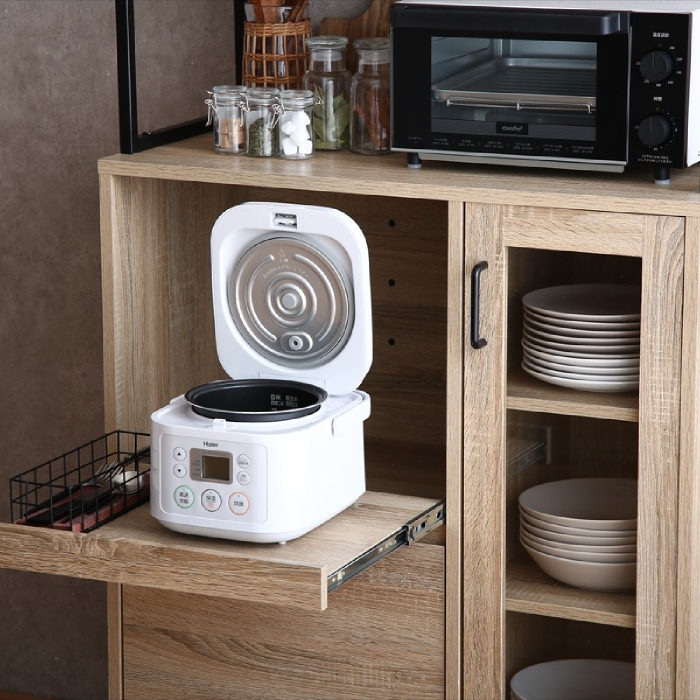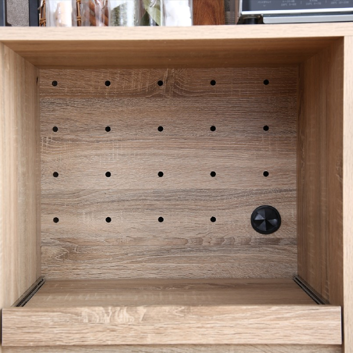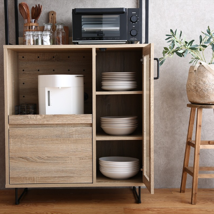 ナチュラルな木目調のデザインで、上品な家具が好きな方におすすめです。食器やキッチン家電を一台でおしゃれに見栄え良く、すっきりと収納していただけます。オーブンレンジなどの大型家電が余裕持っておけるような豊富なスペースを備えており、ゆったりした印象を与えてくれます。