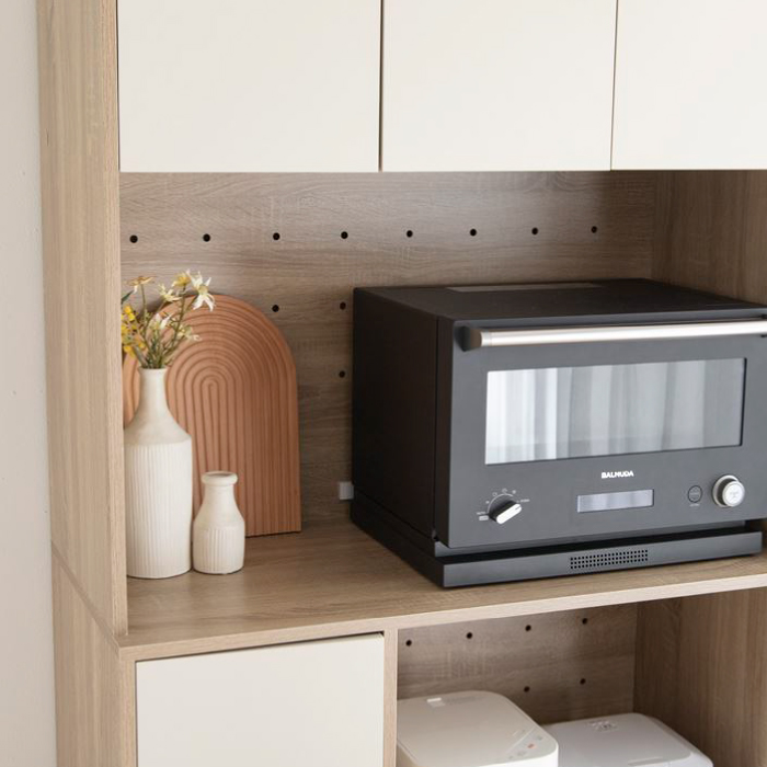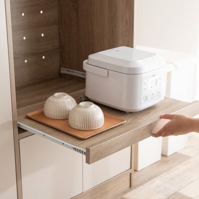 さらに収納スペースも豊富で、大型家電や調理器具など、置く場所に困りやすいものを見栄え良く収納し、お部屋に居心地の良さを与えてくれます。