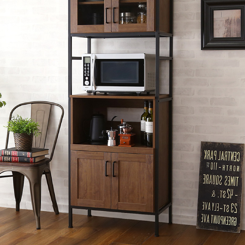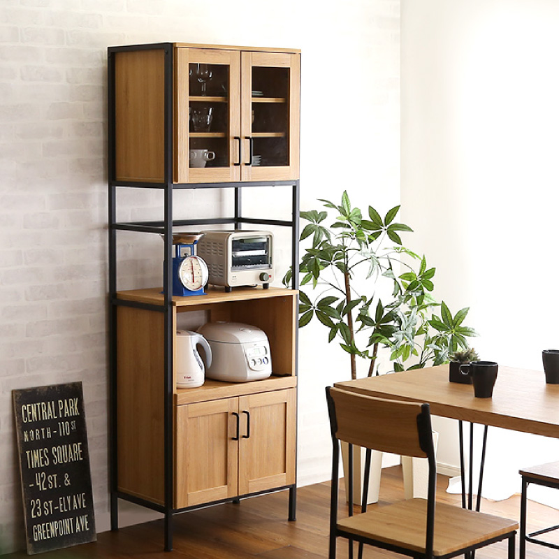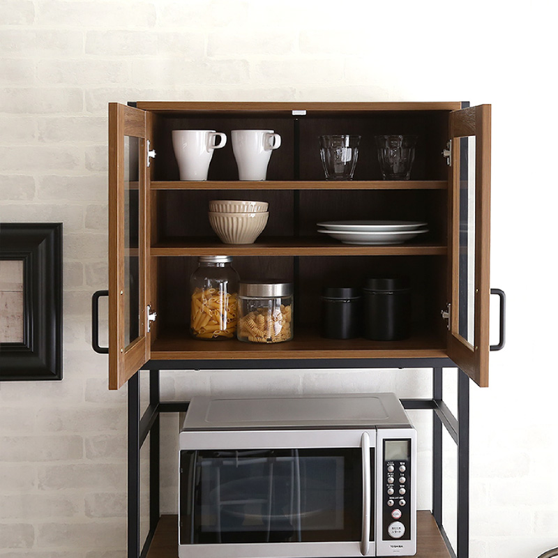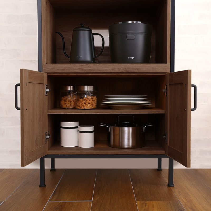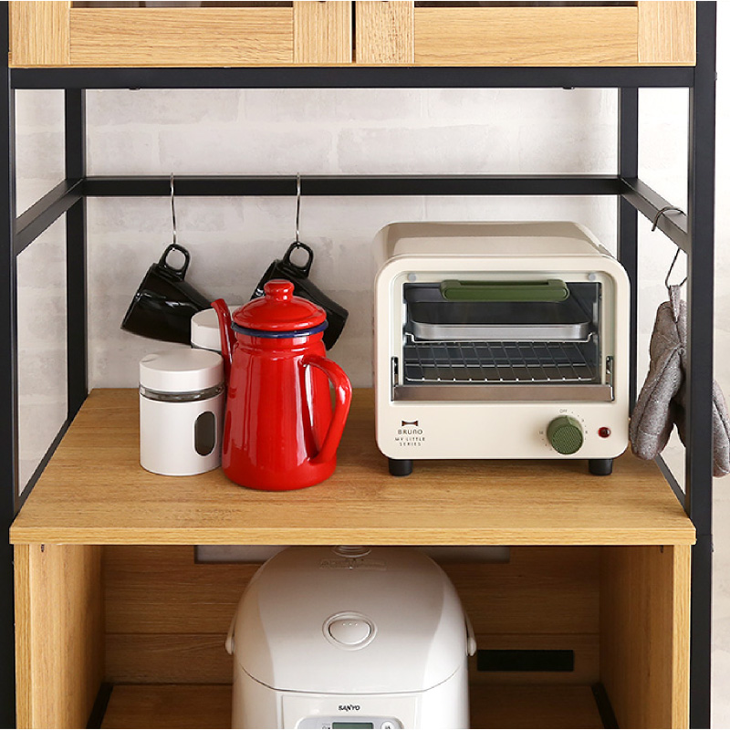 キッチン家電や食器など丸々収納できる大容量でキッチン周りがスッキリ。高さ調整できる可動棚なのでスペースを無駄なくお使い頂ける作りになっています。