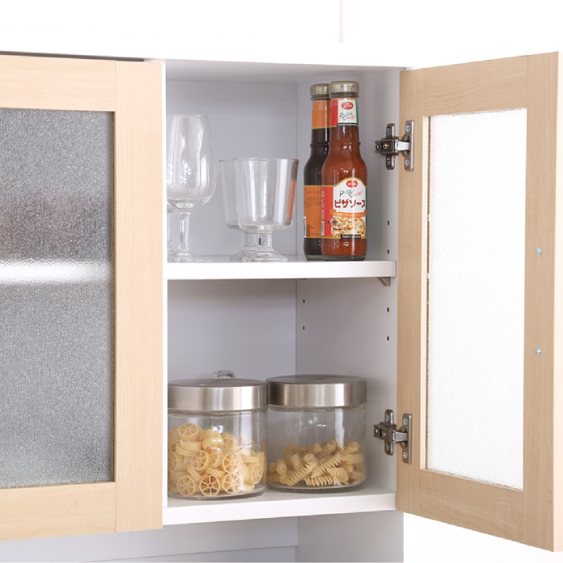落ち着いた木目調が優しい雰囲気を演出し、お部屋に馴染みやすい食器棚です。