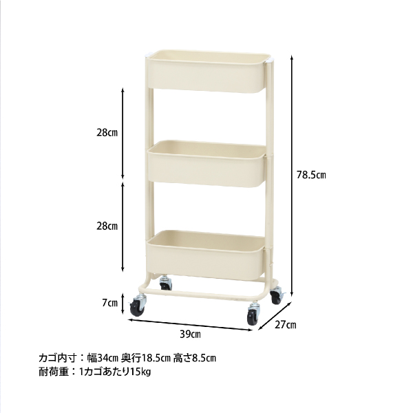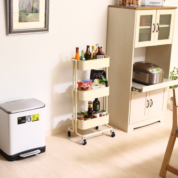 【36%OFF】【送料無料】コロコロキッチンワゴン スリム バスケット3段 アイボリー|インテリア・雑貨ならPIARY(ピアリー)