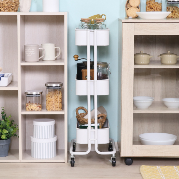 【36%OFF】【送料無料】コロコロキッチンワゴン スリム バスケット3段 ホワイト|インテリア・雑貨ならPIARY(ピアリー)