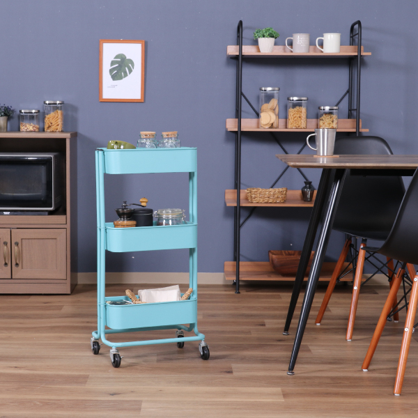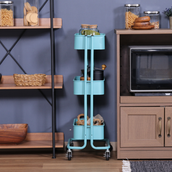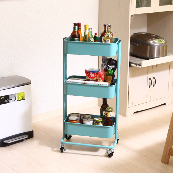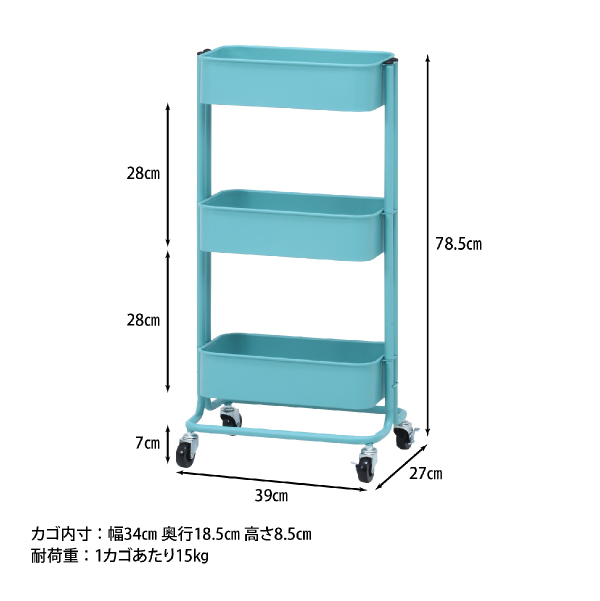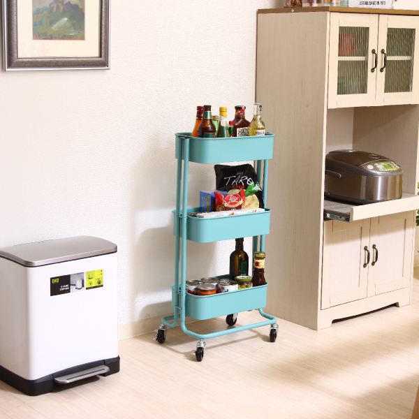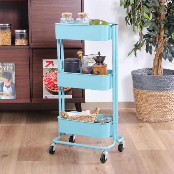 【36%OFF】【送料無料】コロコロキッチンワゴン スリム バスケット3段 ライトブルー|インテリア・雑貨ならPIARY(ピアリー)
