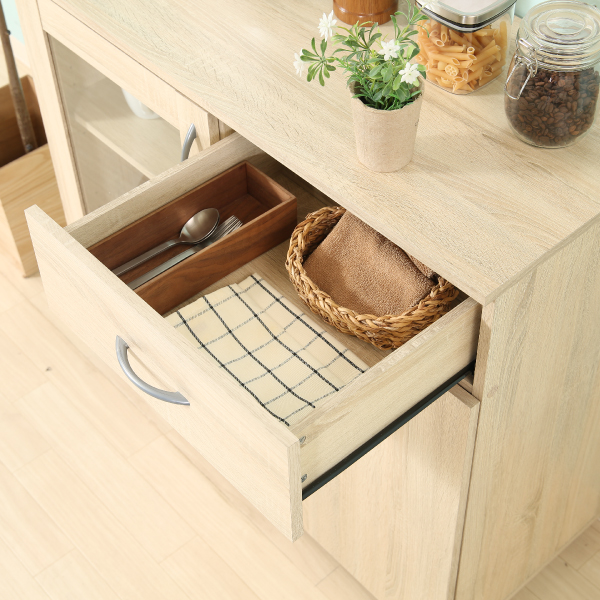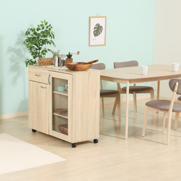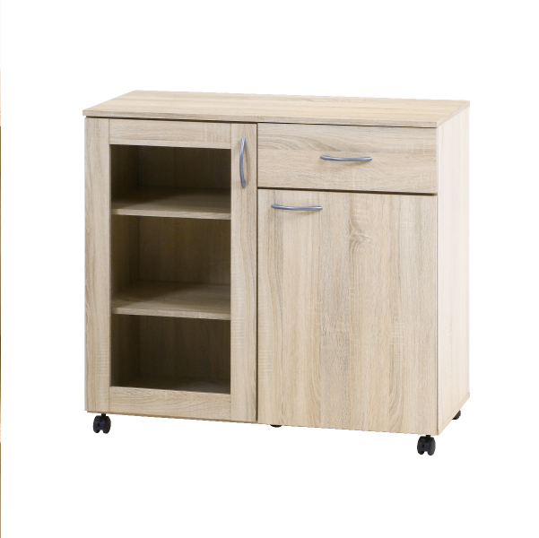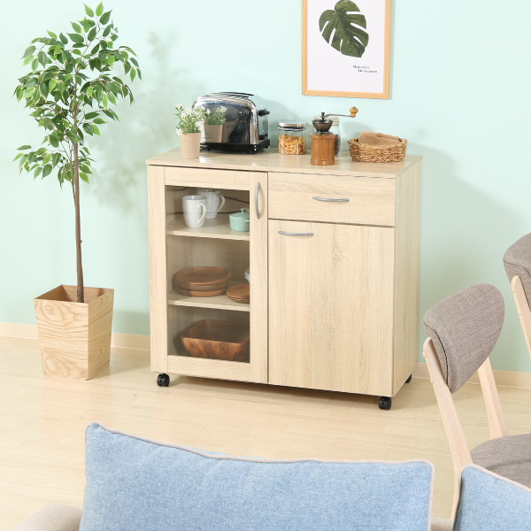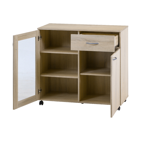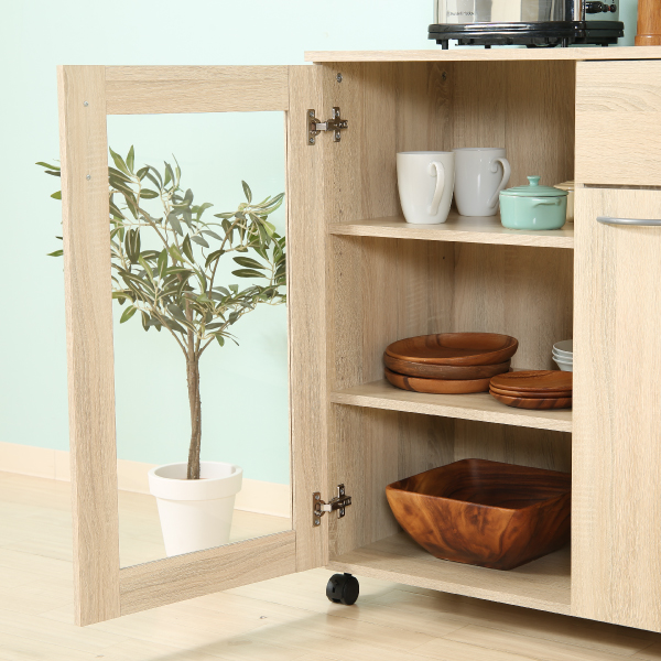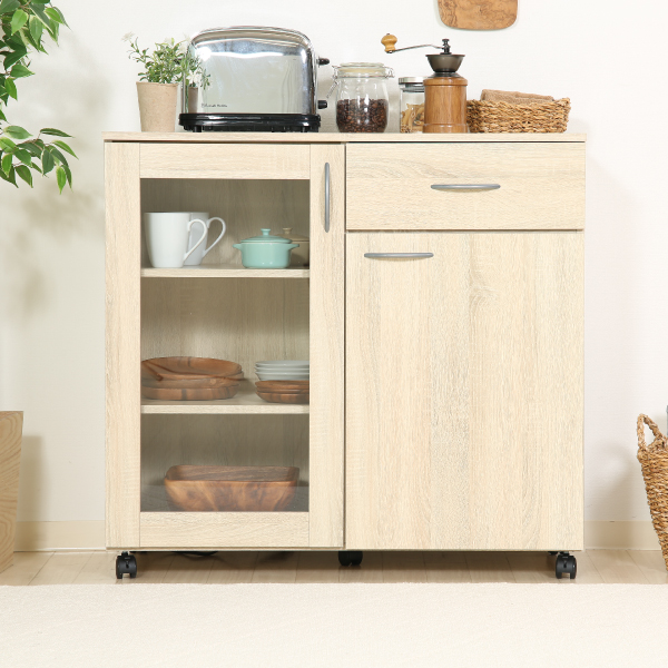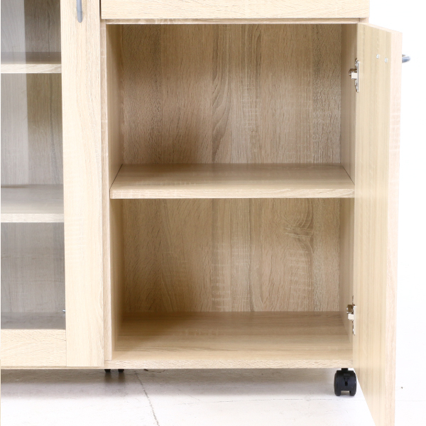 シンプルなデザインなのでお部屋の邪魔になりにくい収納キャビネット。 キッチンだけではなくリビングなど多様な場所でもご活用いただけます。