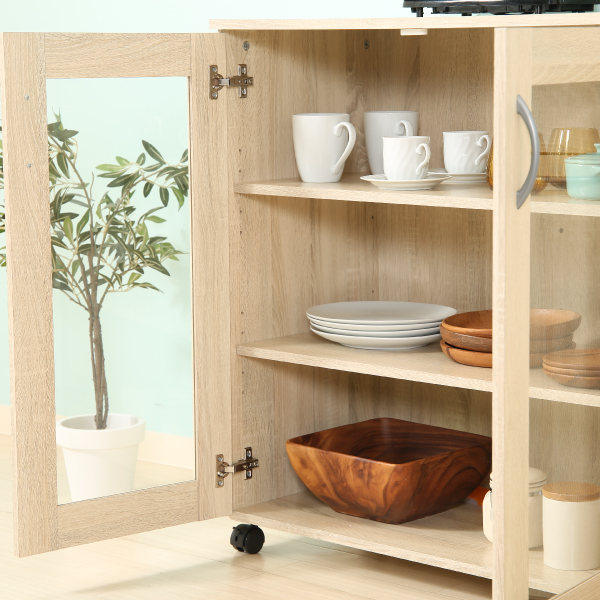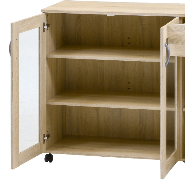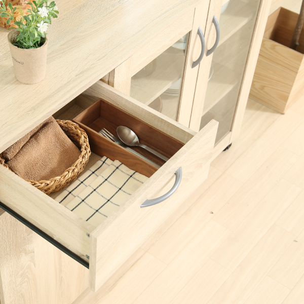 シンプルなデザインなのでお部屋の邪魔になりにくい収納キャビネット。 キッチンだけではなくリビングなど多様な場所でもご活用いただけます。