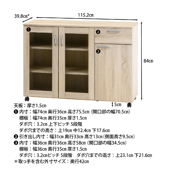 【35%OFF】【送料無料】キャスター付きキッチン収納キャビネット 幅115cm|インテリア・雑貨ならPIARY(ピアリー)