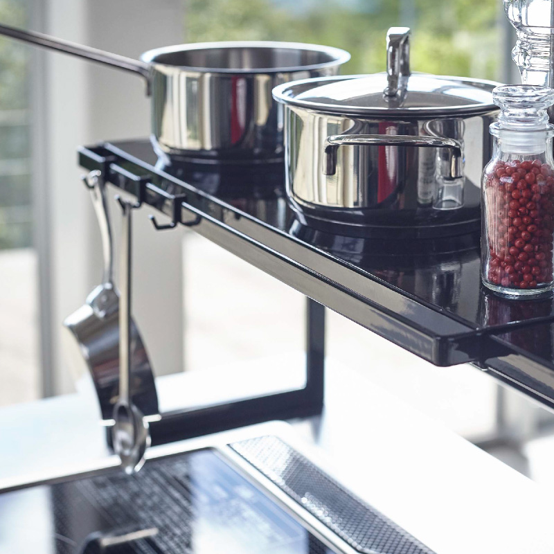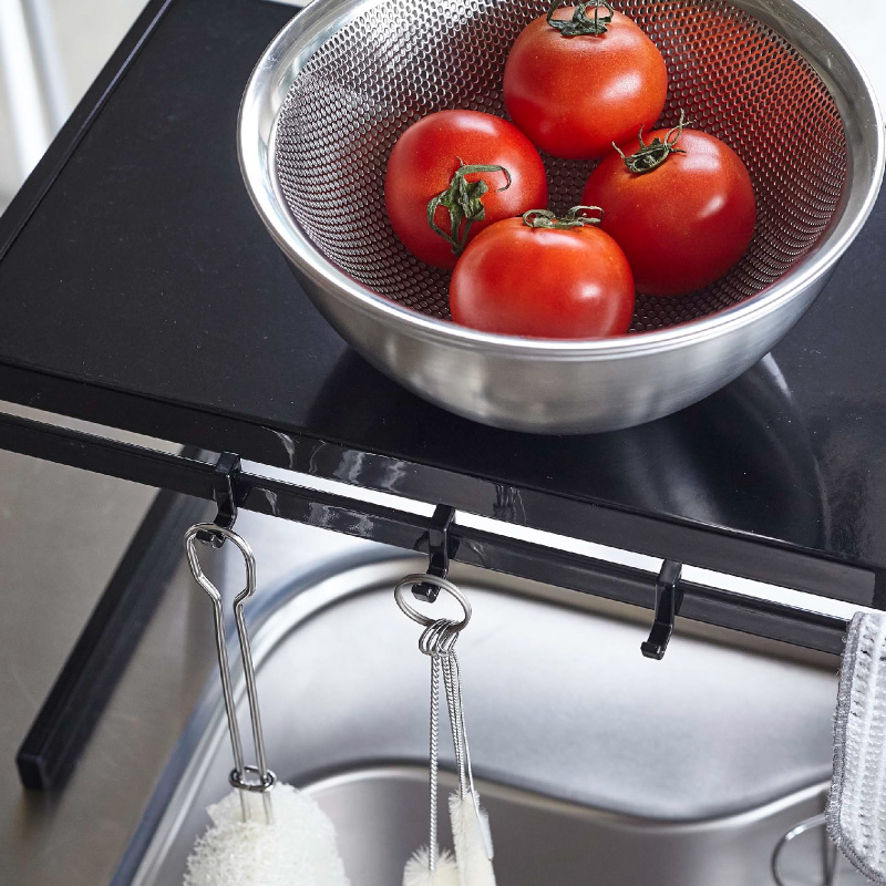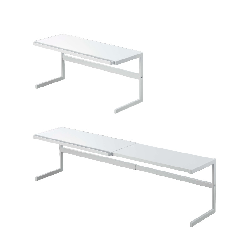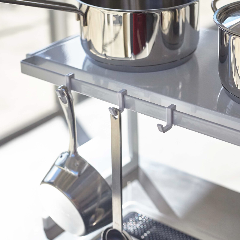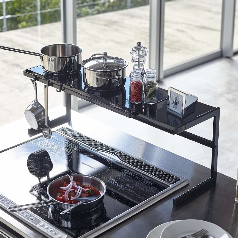 伸縮できるからキッチンの使う場所に合わせて調整できる丈夫なスチール製サポートラック!調理エリアに水まわりエリア・加熱調理エリアとそれぞれの場所でキッチン作業のサポートをしてくれる便利なキッチンラック。