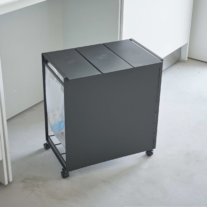 レジ袋を隠して分別できるスタイリッシュな蓋付き分別ダストワゴン。