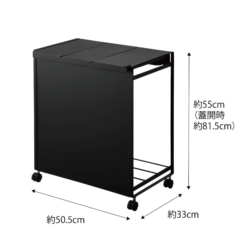 | サイズ | ■外寸:約幅505×奥行330×高さ550mm( キャスター含む ) ■フタ開口時の高さ:約815mm  |
