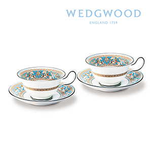 【送料無料】ウェッジウッド フロレンティーン ターコイズ ティーカップ&ソーサ― ペア(ピオニー)