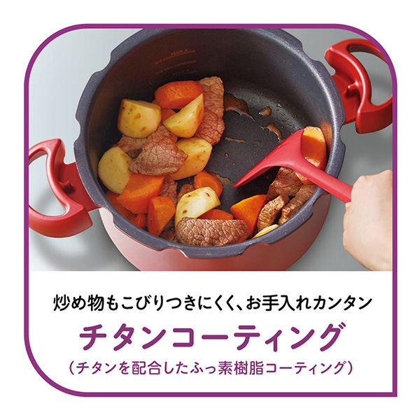 またティファール独自のチタンコーティングで、こびりつきにくく、お手入れもカンタン。