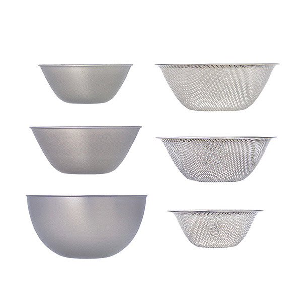 使いやすいボール&パンチングセット。パンチングは水切りもよくでき、網目部分が一枚のステンレスに穴を開けている為、つなぎ目がなく洗いやすく、お手入れが簡単です。パンチングに合ったボウルはサラダなどをそのまま食卓に持っていけるデザインでもあり、使いやすさも良いです。