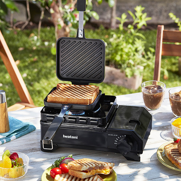 風を気にせず使えるタフなコンロです。風のある場所で空気は通しても風は通さない当社独自の「ダブル風防ユニット」搭載で、野外でも強い加熱性能が得られます。荷重10kg。重くて調理できなかったダッチオーブンが使えます。