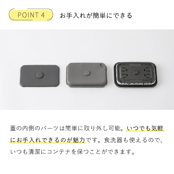 | 材質 | ■容器:AS樹脂 ■フタ:ステンレス鋼/ポリアセタール/ABS樹脂 ■プレート:ポリプロピレン ■パッキン:シリコーンゴム |