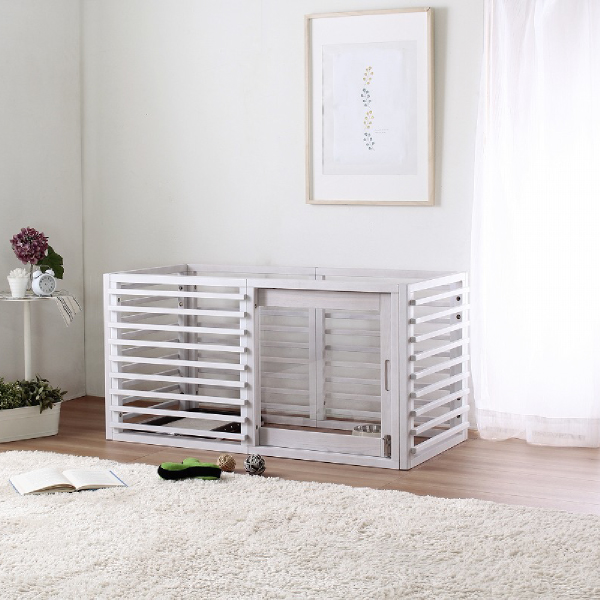 強い力は要らず軽く手をそえるイメージでスーッとすべるローラタイプの引き戸。開けたときも場所をとらないのですっきりとみえます。ワンちゃんとのコミュニケーションも取りやすく圧迫感を軽減。ドアはアクリル板を使用しているので割れる心配がなく安心です。外から鍵をかけることも可能なので留守にする時などワンちゃんが外に出る心配がありません。