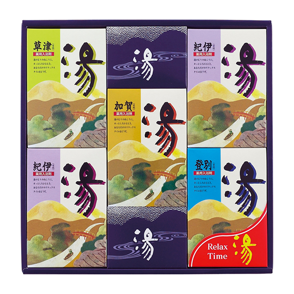 | 内容 | 薬用入浴剤(登別・草津・加賀)(各25g×5袋)×各1、薬用入浴剤(紀伊)(25g×5袋)×2 |
