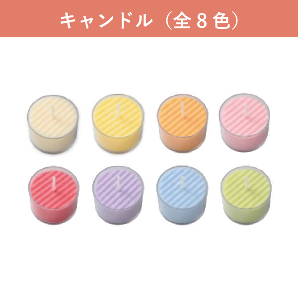 透明カップ入りのカラフルなキャンドル。最大4時間燃焼で、色とあかりを気軽に楽しめます。