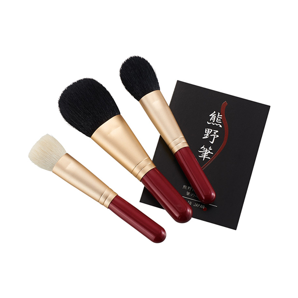 職人の手で丁寧に作られた熊野化粧筆セット。柔らかい穂先が肌に優しく、フェイスブラシ・チークブラシ・リキッドブラシの3本セットでメイクの仕上がりを格上げ。特別感のある贅沢なギフトとして、誕生日や記念日などのプレゼントに最適です。