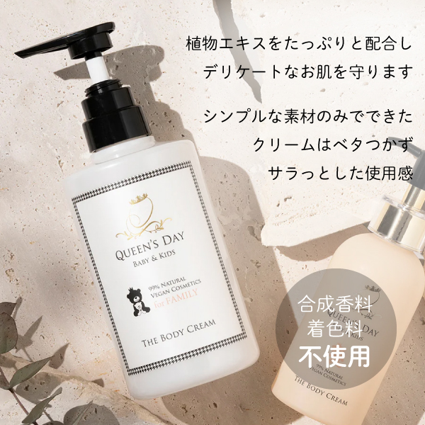 現役ママ達の声から生まれた、国産ヴィーガンのベビースキンケア「QUEEN'S DAY」「赤ちゃんにも心地よい肌触り」をコンセプトに人と環境に優しさを追求しています。