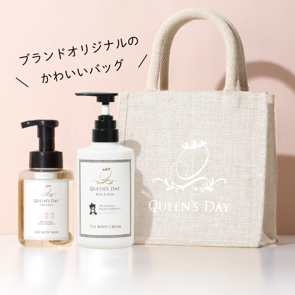 現役ママ達の声から生まれた、国産ヴィーガンのベビースキンケア「QUEEN'S DAY」「赤ちゃんにも心地よい肌触り」をコンセプトに人と環境に優しさを追求しています。