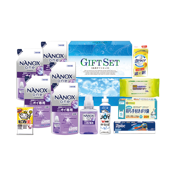 「ナノ洗浄バラエティ洗剤セット」は、ライオンナノックスの洗剤を詰め合わせたギフト。ナノレベルで汚れを分解・除去し、衣類や日常の清潔をサポートします。快適で清潔な生活を贈る実用的な洗剤セットです。
