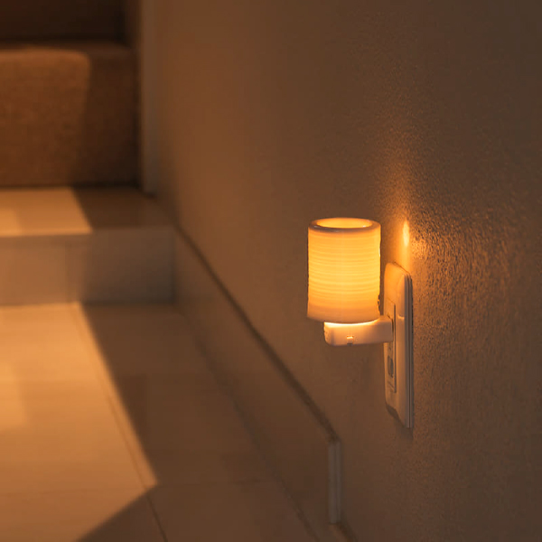 コンセントに直接差し込むアロマランプのアロマオールナイトと、ブレンド精油2種のセット。廊下やお手洗いの常夜灯としても活躍します。