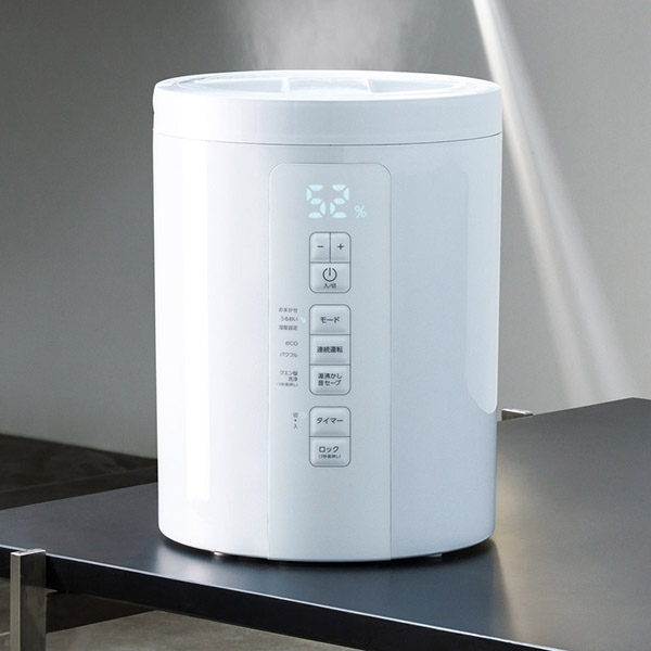 冬場でもお部屋の温度を下げずに加湿ができます。チャイルドロックやマグネットプラグ、空焚き防止機能、本体が倒れても水が漏れづらい構造など安心して使用ができるような設計になっています。