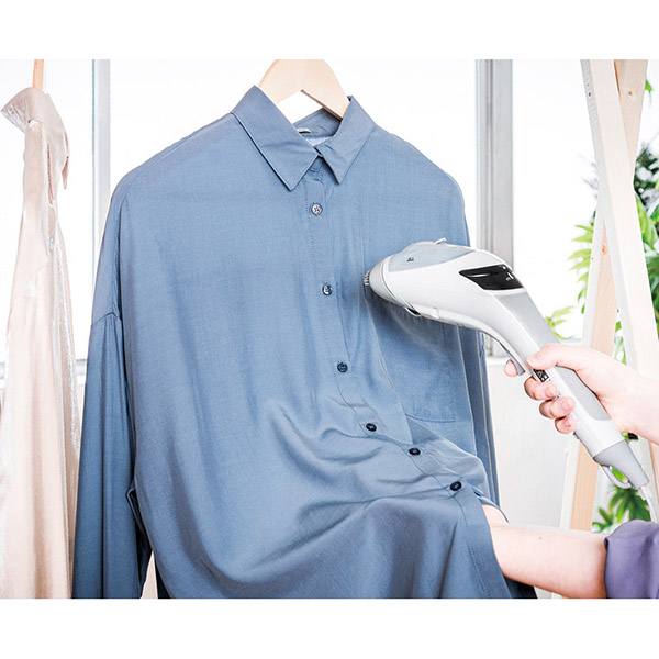 アイロン台不要。ハンガーにかけて簡単シワ伸ばし。電動ポンプ内蔵でスイッチを押すだけで連続スチーム。衣類がビショビショになりにくいイオンスチーム採用。テカリや静電気、防虫剤やタバコ臭対策にもお勧め。