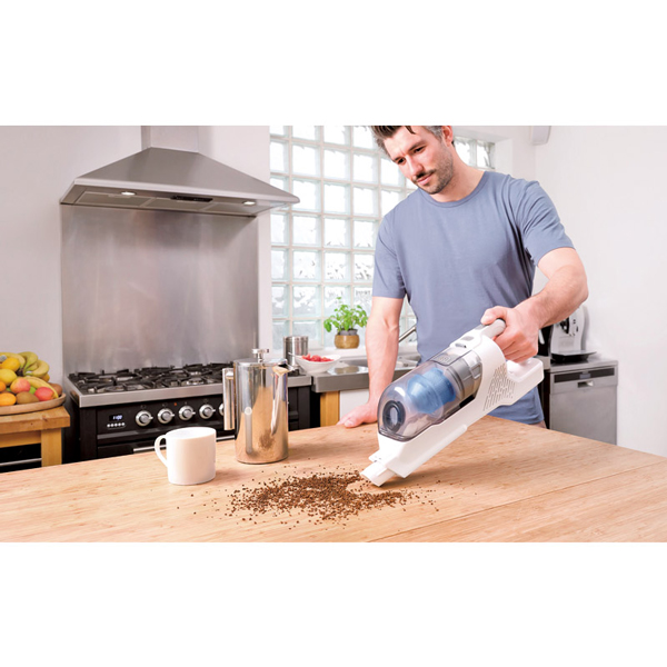 パワフルな14.4Vリチウムバッテリーを採用した2in1スティッククリーナー。スティック使用時は、床材に合わせて自動で吸引モードを切り替えるフロアセンサーとLEDライトで、効率よく掃除ができます。ハンディ使用時は、隙間ノズルやブラシノズルで細部までスッキリ。ダストケースは水洗いでき、お手入れも簡単です。