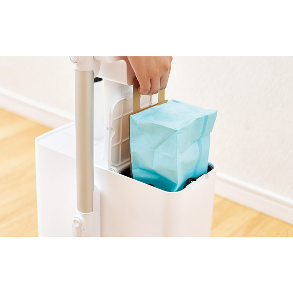 2Lの大容量ダストパックを備えた、ドック吸引式サイクロンスティッククリーナー。使用後に本体を充電ドックへ置くだけで、クリーナー側のダストケース内のごみを自動でドックの紙パックへ移せます。約4ヶ月分のごみをまとめて回収できるため、毎回のごみ捨ての手間を大幅に軽減。日々の掃除がぐっとラクになります。
