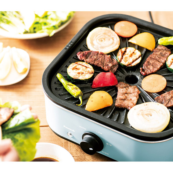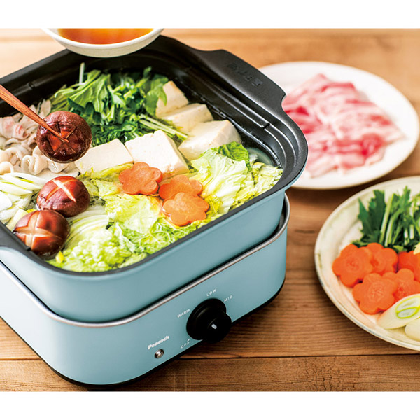鍋も焼肉もこれ一台で美味しさいろいろ。お手入れしやすいシンプル設計。鍋とプレートは丸洗い可能。焦げ付きにくいフッ素加工。普段のお料理からホームパーティーまで様々な場面で大活躍。