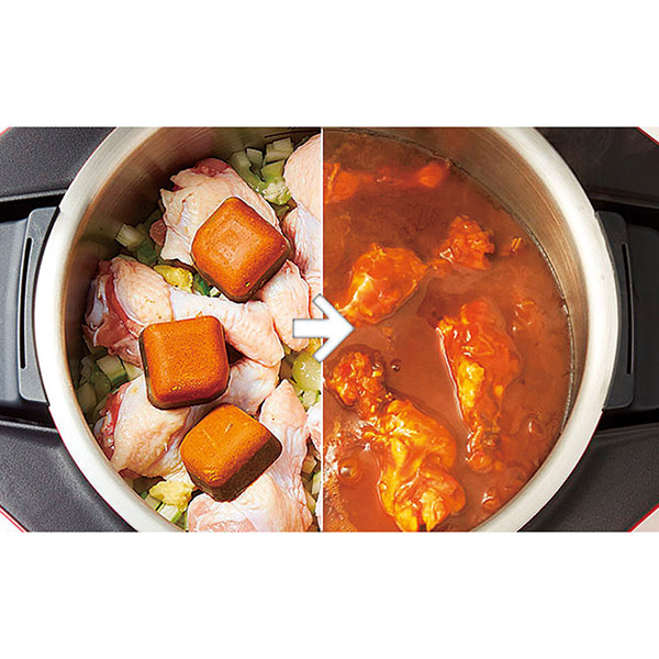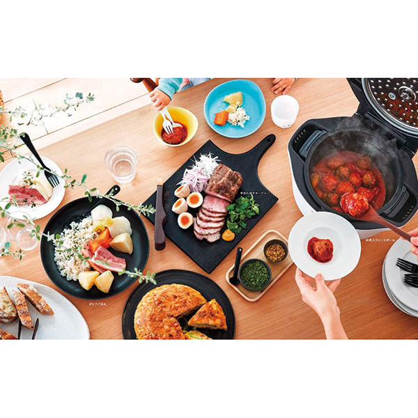 コンパクトなデザイン。煮物やスープ、蒸し物、めん類、発酵・低温調理、お菓子までホットクックにおまかせ。まぜ技機能を使ったメニューや低温調理など、多彩なメニューが楽しめます。予約調理で朝セットすれば、帰宅時にはアツアツ料理の完成。