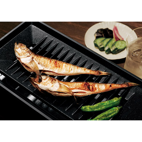 プレートからすばやく油が下の受け皿に落ちていくため、調理中の煙、油跳ねを軽減した炉端焼き器。ご自宅でお酒を楽しみながらちょっと贅沢なおつまみをテーブルで楽しめます。