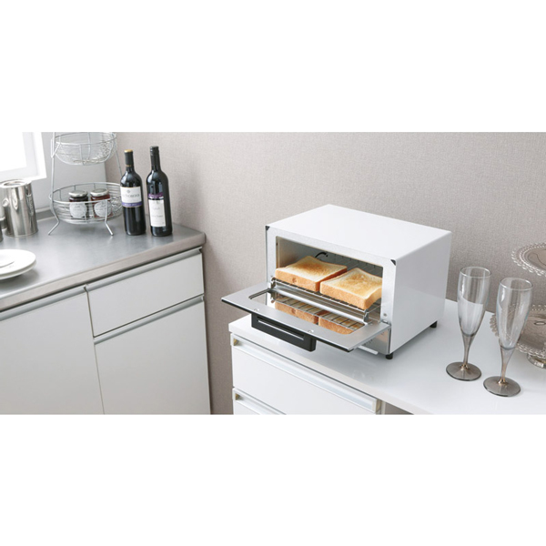 ミラーガラス調で、キッチンやお部屋に馴染むインテリア性の高いデザイントースターです。火力は4段階(220/500/720/1000W)に切り替え可能で、用途に合わせて調整できます。