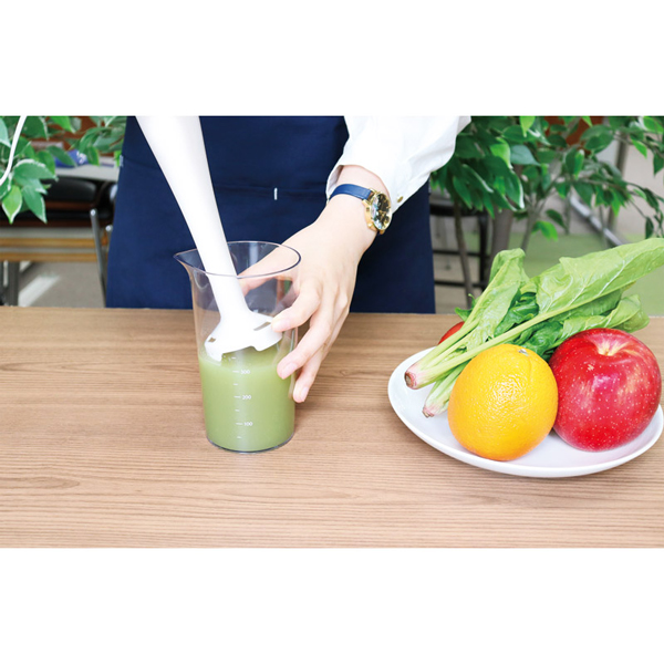 「つぶす」「混ぜる」が手軽にできるスティック型ブレンダー。握りやすい持ち手で操作も簡単。ワンタッチで切り替えられる2段階スピードや、容器を傷つけにくいプラスチックガードで、快適に調理をサポートします。
