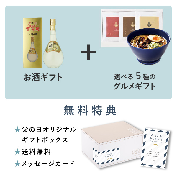 お父さんが貰って嬉しい人気のお酒と、だし茶漬けやラーメンなどから好みに合わせて選べるグルメを贈る、とっておきの父の日ギフトセットです!父の日専用メッセージカードを添えて、ギフトと一緒に「ありがとう」の気持ちを贈りましょう。
