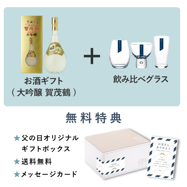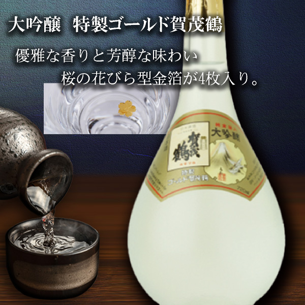 | 内容 | 大吟醸 特製ゴールド賀茂鶴 720ml)×1、飲み比べ酒グラスセット)×1 |