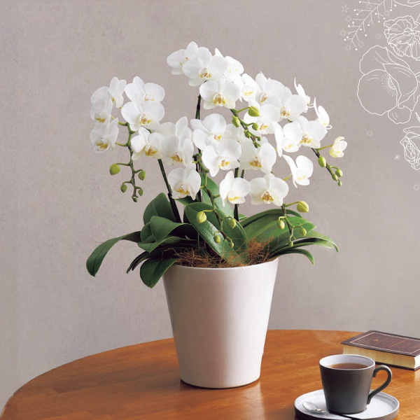 | 内容 | ミディ胡蝶蘭5本立て白×1(6号鉢)、メッセージカード、お手入れのしおり付き |