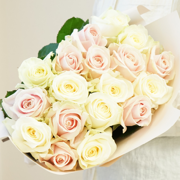 18本の薔薇の花束には「誠実」という意味があり、大切な方への真っ直ぐな気持ちが伝わる贈り物です。アヴァランチェはブライダルで人気の品種で、記念日や誕生日のギフトにもおすすめです。