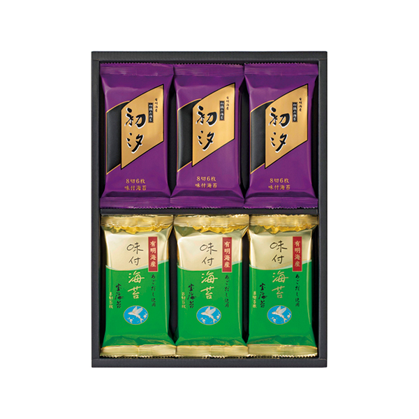 | 内容 | 味付海苔(8切6枚)・あごだし味付海苔(8切5枚)×各9 |