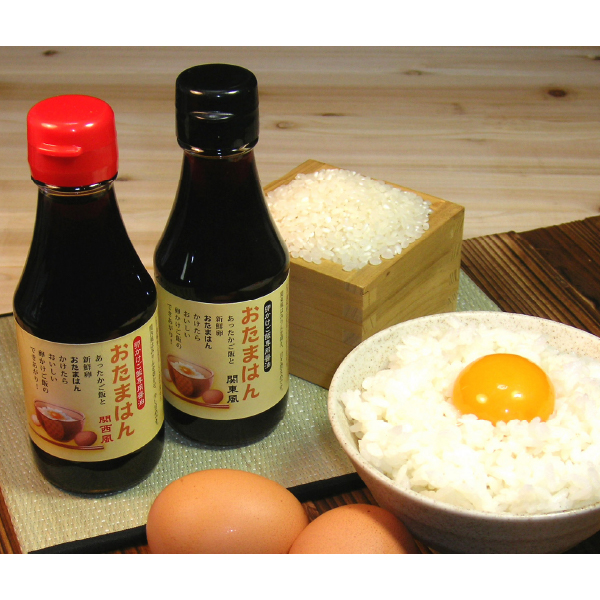 お米は島根県雲南市吉田町産のこしひかり。卵は吉田町の平地でのびのびと育った雌雄混合飼育の有精卵。「おたまはん」は国産丸大豆醤油をベースにかつおだしとみりんで旨みを出した卵かけご飯専用醤油です。