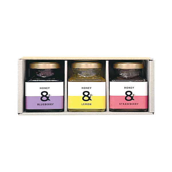 ブルーベリー、レモン、ストロベリーの果汁やピールを加えた、彩り豊かな蜂蜜ギフト。フルーツの爽やかな酸味と蜂蜜のやさしい甘さが調和した絶妙な味わいで、毎日の食卓がひとさじでもっとおいしく、もっと楽しくなるセットです。