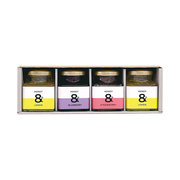 ブルーベリー、レモン、ストロベリーの果汁やピールを加えた、彩り豊かな蜂蜜ギフト。フルーツの爽やかな酸味と蜂蜜のやさしい甘さが調和した絶妙な味わいで、毎日の食卓がひとさじでもっとおいしく、もっと楽しくなるセットです。