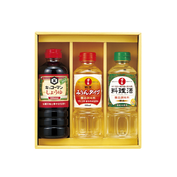 | 内容 | キッコーマンこいくちしょうゆ500ml・日の出料理酒400ml・日の出割烹みりんタイプ400ml×各1 |