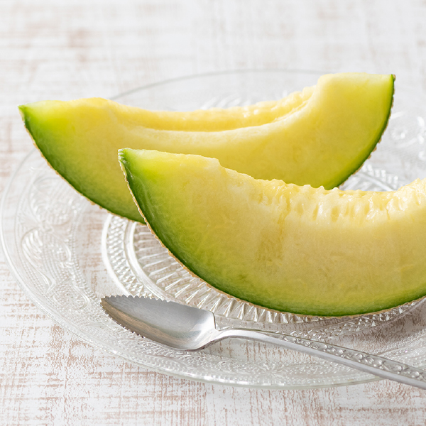 静岡県西部・袋井市一帯で育てられるマスクメロンの最高峰"クラウンメロン"。太陽の光を活かすよう開発されたガラス温室の中、1本の木に1つの実だけを厳選し、全ての養分をその1玉に集中させ育てられます。また、出荷の際には形状・糖度・大きさ等の厳しい検査が行われ、その基準をクリアしたものだけにクラウン(王冠)マークのシールが与えられるのです。静岡が誇るクラウンメロンの優美な香りととろける甘みをご堪能ください。