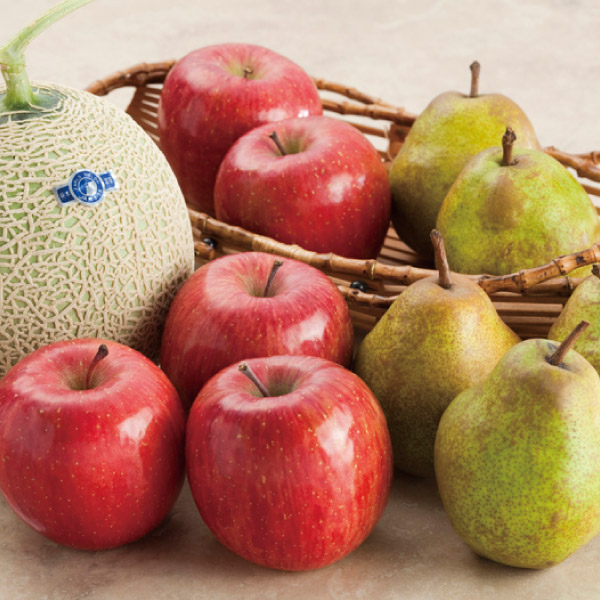| 内容 | 温室マスクメロン(約1.2kg)×1、ラ・フランス(約250g)・サンふじりんご(約250g)×各5 |