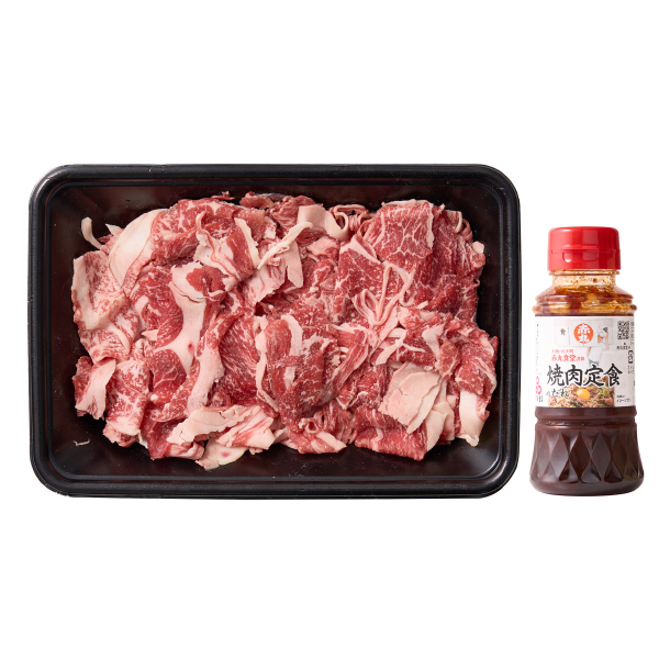 | 内容 | 国産こま切れ牛肉200g、赤丸焼肉定食のたれ185g |