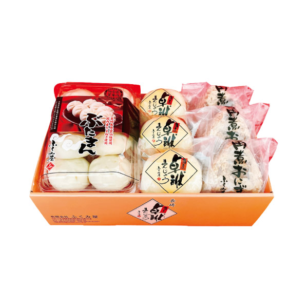 | 内容 | 長崎ぶたまん(約26g)×8、角煮卓袱まんじゅう(約60g)・角煮おにぎり(約105g)×各3 |